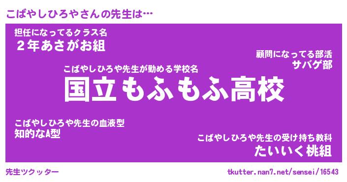 | ヘコむあだ名 | 『こばにゅー』『豆乳』『こばぷりん』 |
