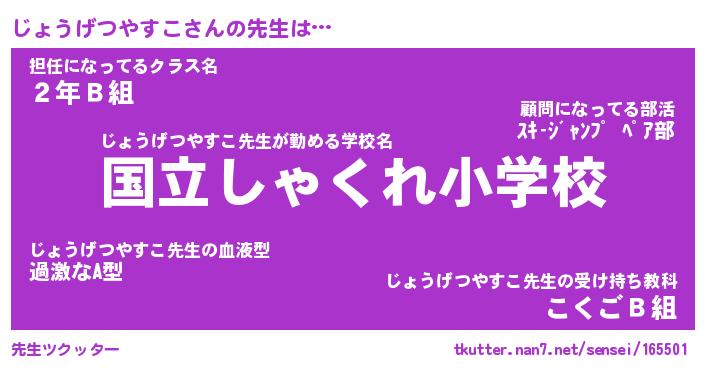 | 伝説のあだ名 | 『伝説のスナイパーじょうげつやすこ』 |