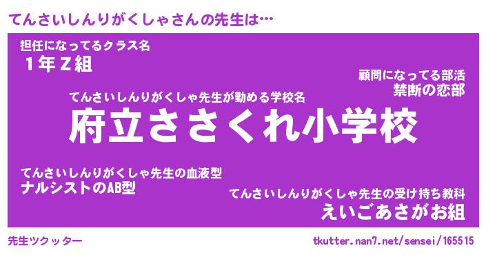 | 伝説のあだ名 | 『封印されしスナイパーてんさいしんりがくしゃ』 |