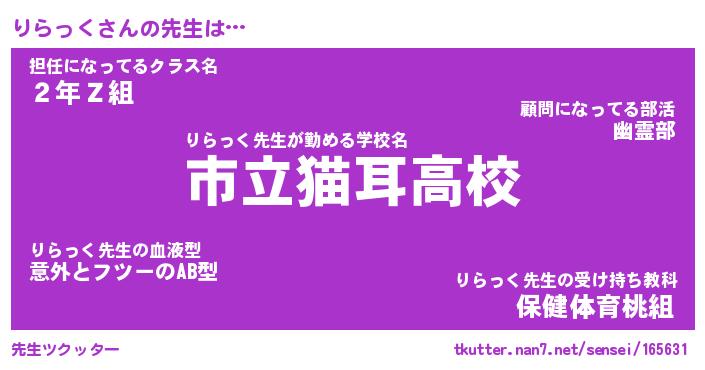 | 意味不明あだ名 | 『ペロリンりらっく』『永久保存りらっく』 |
