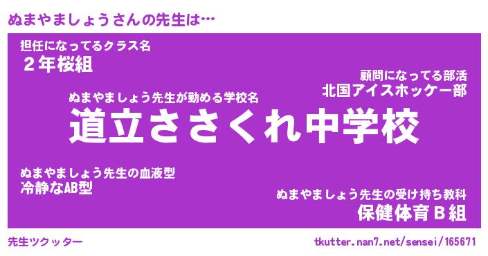 | ヘコむあだ名 | 『ぬまもー』『なまこ酢』『ぬまを』 |