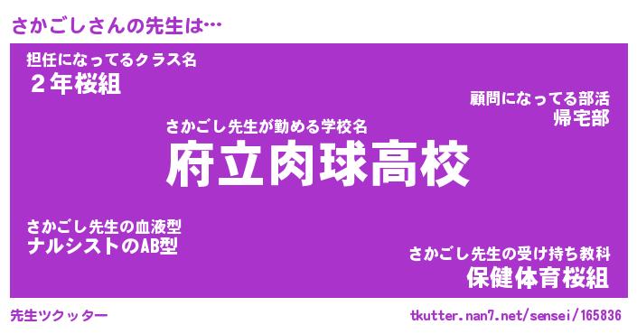 | 意味不明あだ名 | 『ペロリンさかごし』『永久保存さかごし』 |