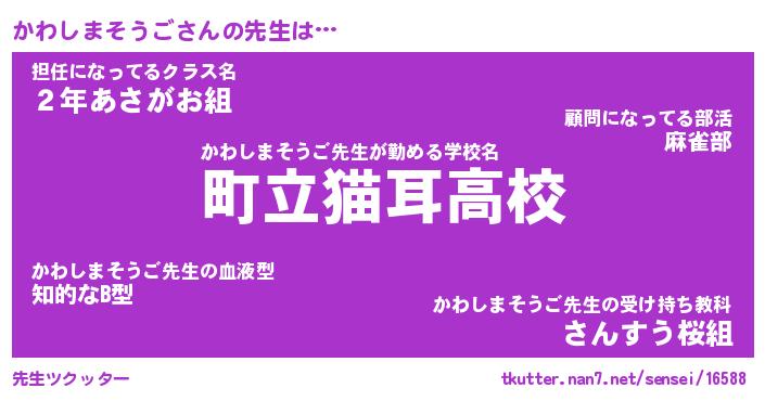 | 胡散臭い通販商品みたいなあだ名 | 『億万長者になれるブレスレット…その名も「かわしまそうご」』 |
