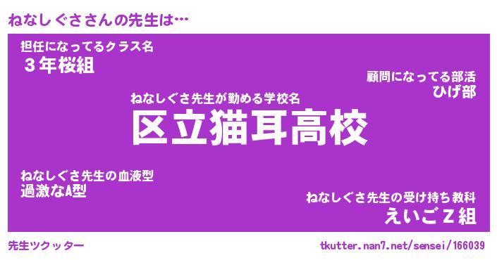 | ファンタジー風あだ名 | 『ネナフェル』『エターナルネナシグサー』 |