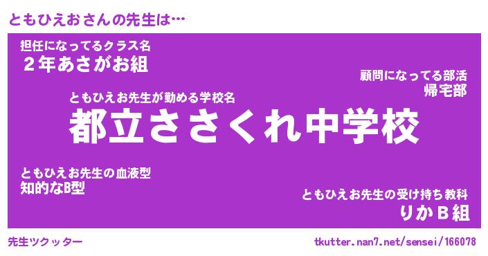| ヘコむあだ名 | 『とももー』『なまこ酢』『ともお』 |