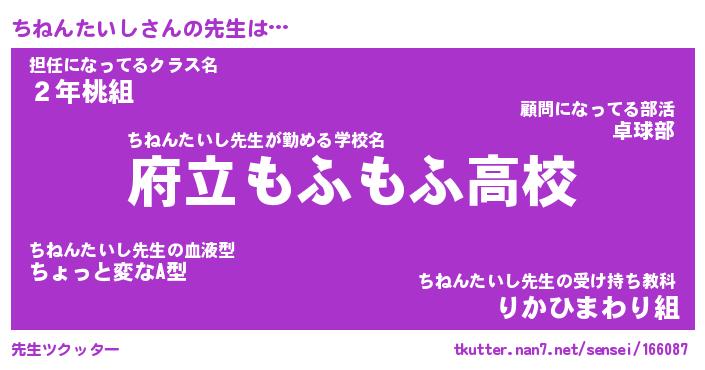 | ヘコむあだ名 | 『ちねにゅー』『なまこ酢』 |