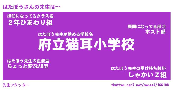 | 意味不明あだ名 | 『ペロリンはたぼう』『永久保存はたぼう』 |
