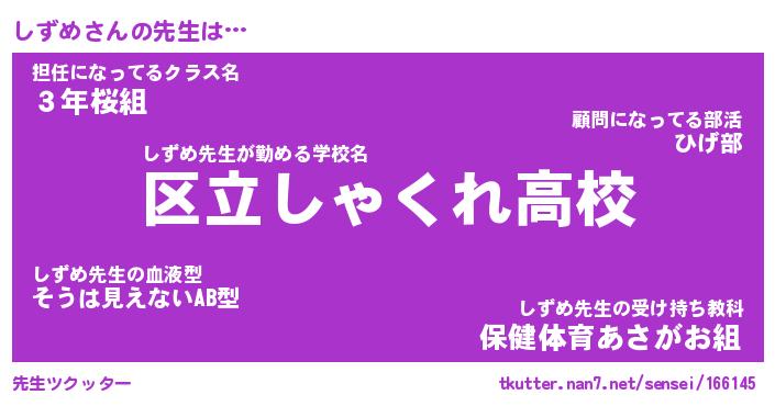 | ポケモン風あだ名 | 『シズチュウ』『シズメダネ』 |