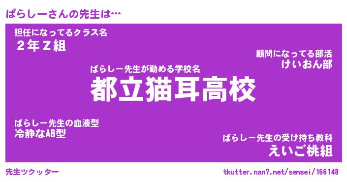 | 意味不明あだ名 | 『ペロリンばらしー』『永久保存ばらしー』 |