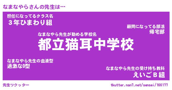| ヒーロー風カッコイイあだ名 | 『スーパーナマナヤラ』『魔戒騎士ナマ』 |