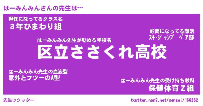 | 伝説のあだ名 | 『封印されしスナイパーはーみんみん』 |