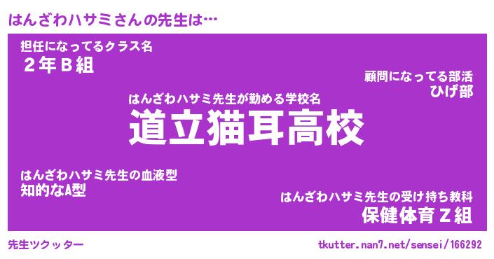 | ポケモン風あだ名 | 『ハンチュウ』『ハンザダネ』 |