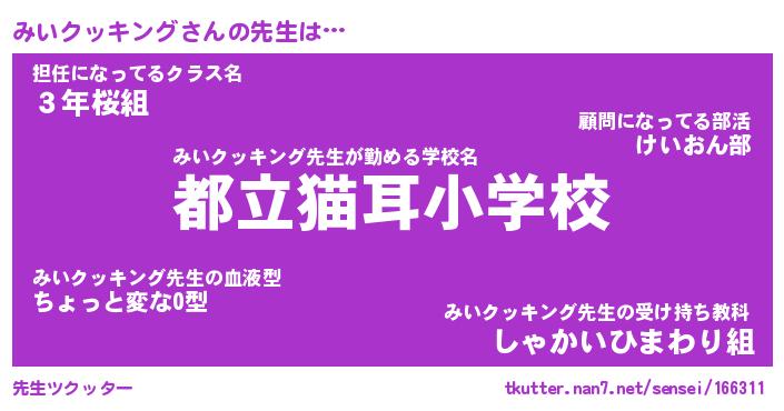 | 男性向けラノベタイトル風あだ名 | 『みいクッキングの憂鬱』 |