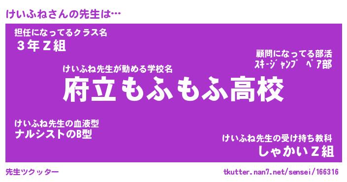 | 意味不明あだ名 | 『ペロリンけいふね』『永久保存けいふね』 |