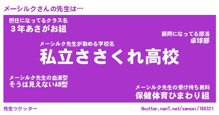 | ヒーロー風カッコイイあだ名 | 『スーパーメーシルク』『炎刃騎士メー』 |