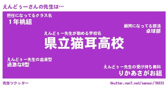 | 男性向けラノベタイトル風あだ名 | 『えんどぅーの憂鬱』 |