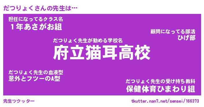 | ファンタジー風あだ名 | 『ダツフェル』『エターナルダツリョクー』 |