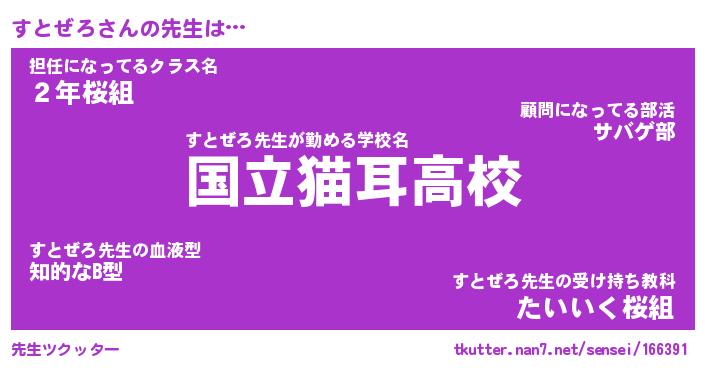 | 意味不明あだ名 | 『ペロリンすとぜろ』『永久保存すとぜろ』 |