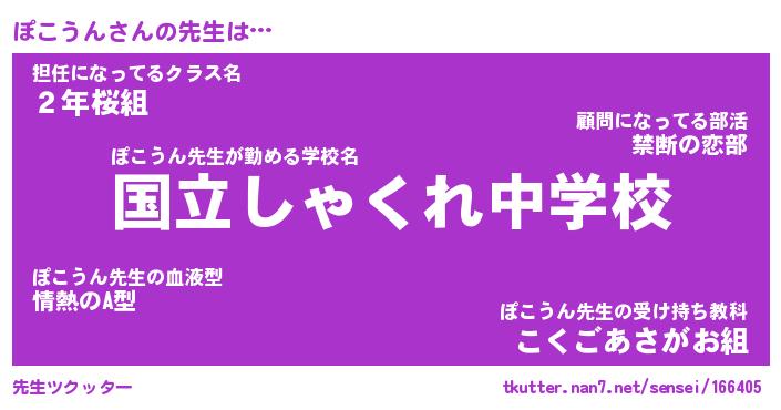 | 意味不明あだ名 | 『ペロリンぽこうん』『永久保存ぽこうん』 |
