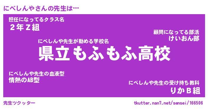 | ヘコむあだ名 | 『にべにゅー』『なまこ酢』『にべを』 |