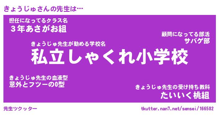 | ヒーロー風カッコイイあだ名 | 『スーパーキョウジュ』『銀牙騎士キョ』 |