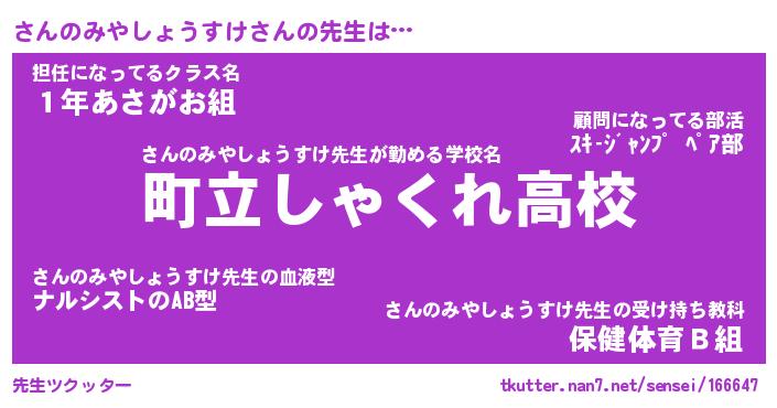 | 意味不明あだ名 | 『ペロリンさんのみやしょうすけ』 |