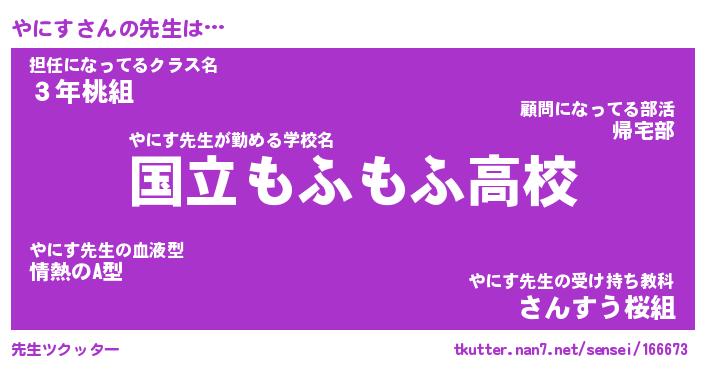 | ファンタジー風あだ名 | 『ヤニフェル』『エターナルヤニスー』 |