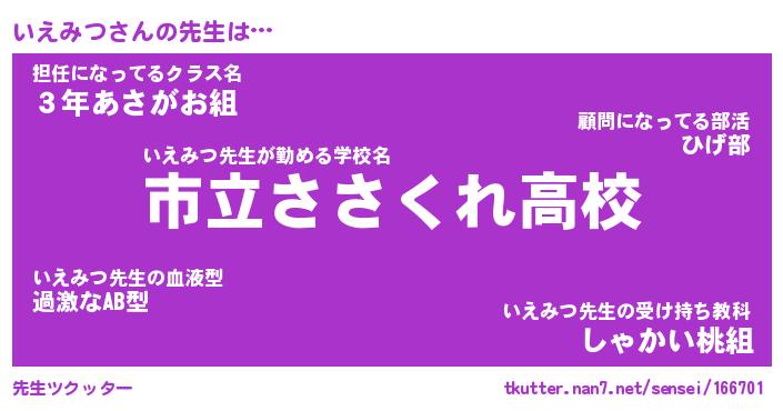 | 意味不明あだ名 | 『ペロリンいえみつ』『永久保存いえみつ』 |