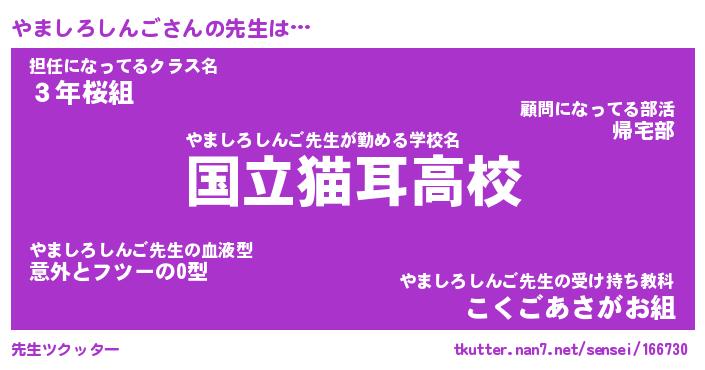 | ピコ太郎風あだ名 | 『ヤコ次郎』『ピヤ六郎』『ヤマ四郎』 |