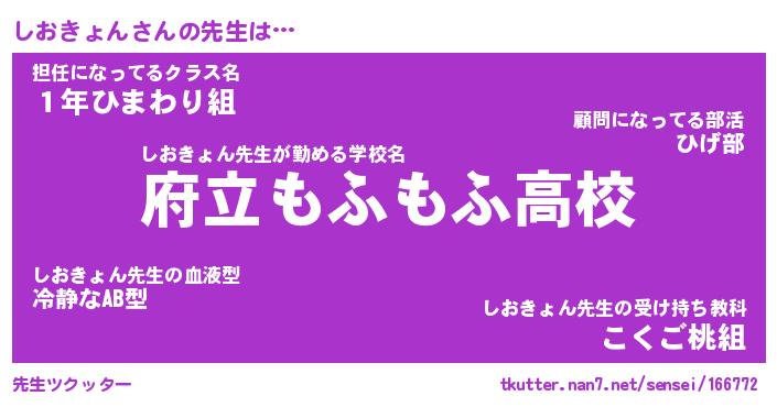| ファンタジー風あだ名 | 『シオフェル』『エターナルシオキョンー』 |