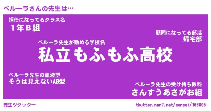 | ファンタジー風あだ名 | 『ベルフェル』『エターナルベルーラー』 |