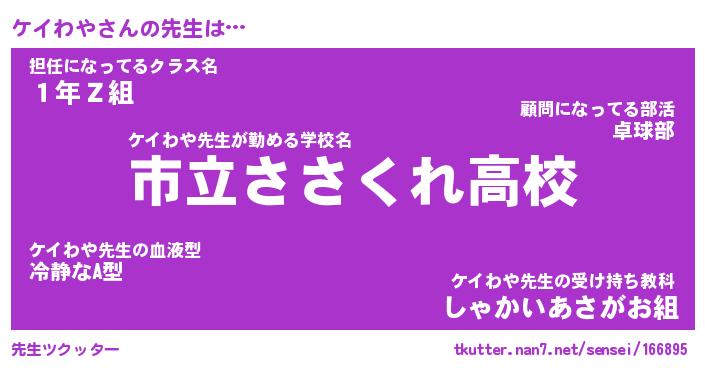 | 意味不明あだ名 | 『ペロリンケイわや』『永久保存ケイわや』 |