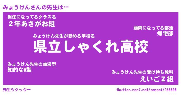 | ヒーロー風カッコイイあだ名 | 『スーパーミョウケン』『銀牙騎士ミョ』 |
