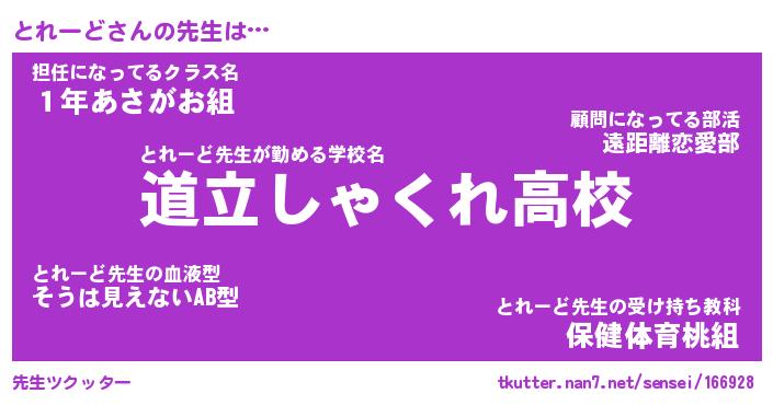 | 意味不明あだ名 | 『ペロリンとれーど』『永久保存とれーど』 |