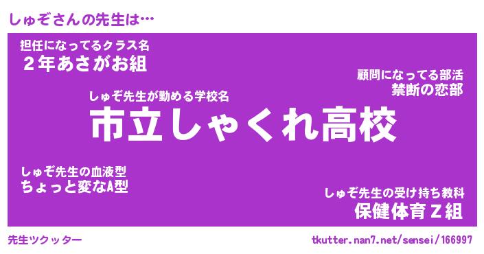 | ヒーロー風カッコイイあだ名 | 『スーパーシュゾ』『ウルトラしゅぞマン』 |