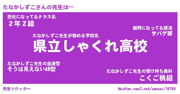 | ヒーロー風カッコイイあだ名 | 『スーパータナカシズコ』『黄金騎士タナ』 |