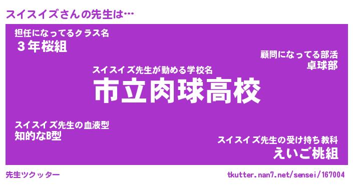 | ファンタジー風あだ名 | 『スイフェル』『エターナルスイスイズー』 |