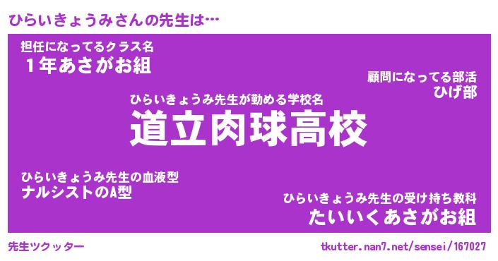 | 恥ずかしいあだ名 | 『プリティーひらいきょうみ』『ひらちん』 |