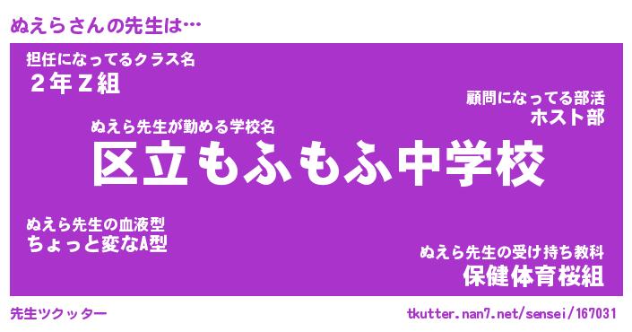| 意味不明あだ名 | 『ペロリンぬえら』『ぬえらフォーエバー』 |