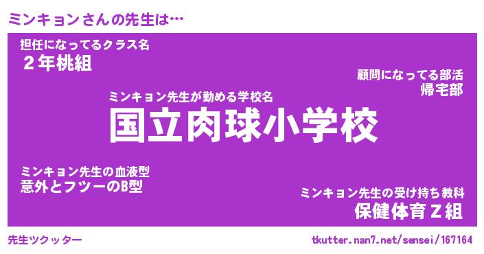 | ヘコむあだ名 | 『ミンふぇ~』『豆乳』『ミンお』 |