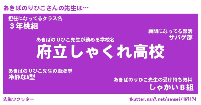 | 伝説のあだ名 | 『封印されしスナイパーあきばのりひこ』 |