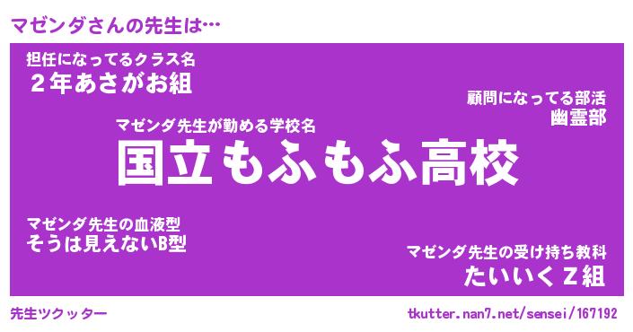 | ファンタジー風あだ名 | 『マゼフェル』『エターナルマゼンダー』 |