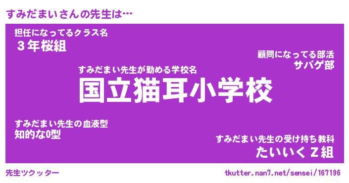 | 2回繰り返すあだ名 | 『すみすみ』『すすみみ』『ぬめぬめ』 |