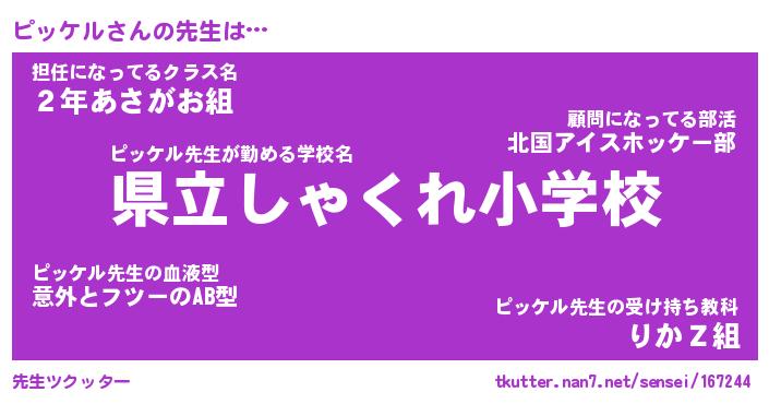 | 意味不明あだ名 | 『ペロリンピッケル』『永久保存ピッケル』 |