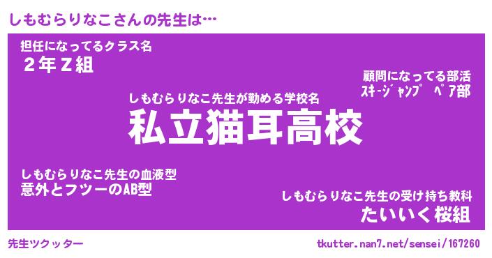 | 意味不明あだ名 | 『ペロリンしもむらりなこ』 |