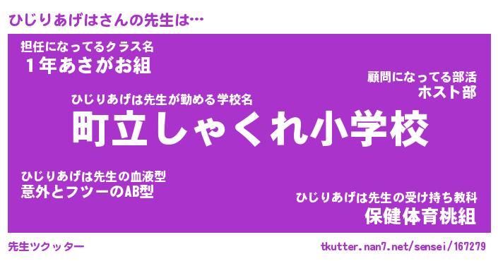 | 伝説のあだ名 | 『封印されしスナイパーひじりあげは』 |