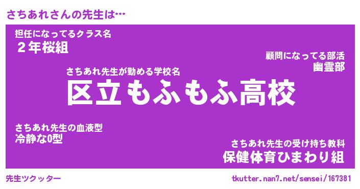 | 意味不明あだ名 | 『ペロリンさちあれ』『永久保存さちあれ』 |