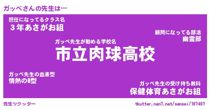 | ファンタジー風あだ名 | 『ガッフェル』『エターナルガッペー』 |