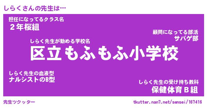 | ヒーロー風カッコイイあだ名 | 『スーパーシラク』『ウルトラしらくマン』 |