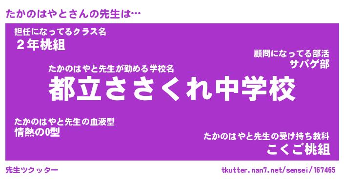 | ヒーロー風カッコイイあだ名 | 『スーパータカノハヤト』『黄金騎士タカ』 |